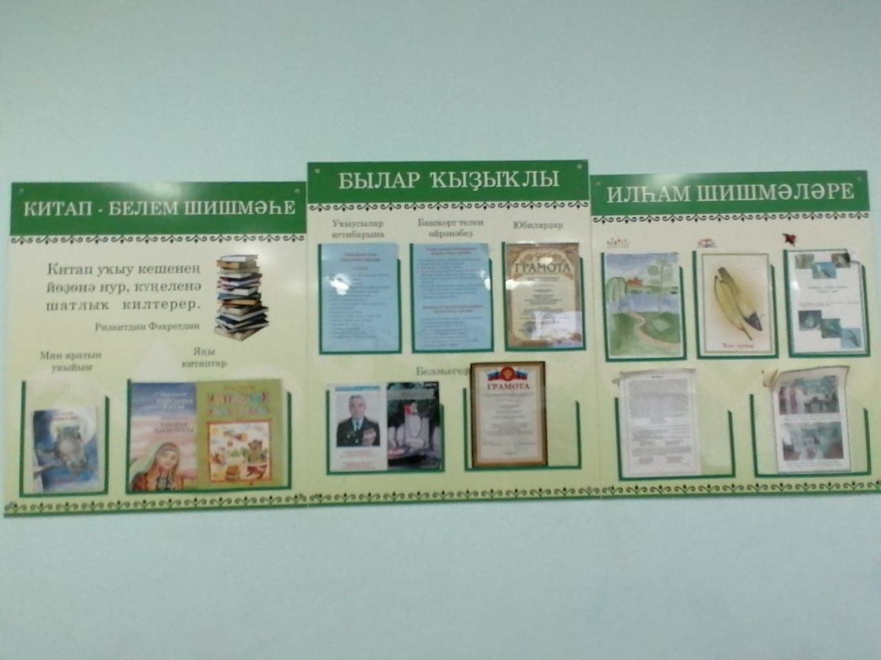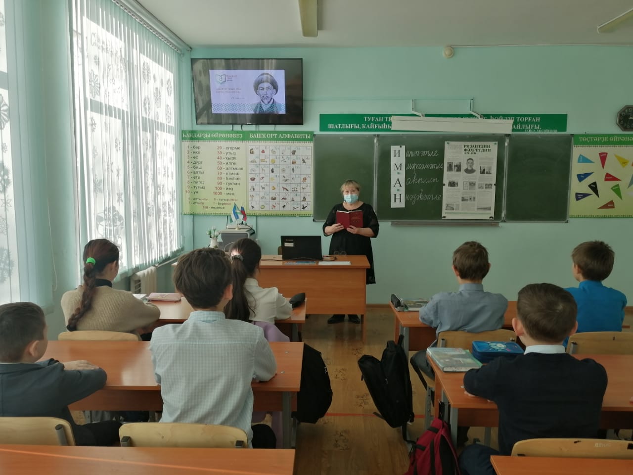 Сегодняшний день 12 декабря прошел под девизом: «Башҡорт теле-сабырлыҡ теле» «Башкирский язык-язык терпения, мудрости», участвовали в Акции «Напиши четверостишие на башкирском языке, используя рифму». Участвовали в Республиканской викторине, которую приготовили редакции журналов «Аҡбуҙат», «Шоңҡар», «Аманат», редакция газеты «Йәншишмә». Ученики с удовольствием ознакомились с периодическими изданиями журналов и газет на башкирском языке